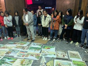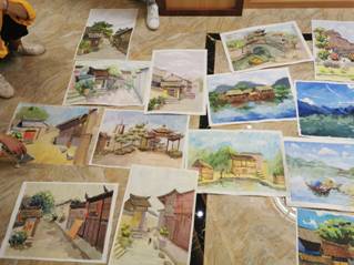 10月11日-18日集中训练同学们的色彩。无论是油画、水粉还是水彩画,前期的色彩训练对于美术生是非常重要的。从宏观方面,老师们为同学们讲解了选景与构图、普及本色、深入刻画和调整画面等基本步骤;从微观方面,山的画法、水的画法、树木的画法以及建筑物的画法都毫无保留的进行了一一详细的讲解。同学们听的津津有味,下笔也有了底气。同样,晚上老师们对白天同学们的色彩作品进行了一一评讲,指出了同学们的不足。同学们在学思悟中取得了较大的成绩。涌现出不少优秀的员工作品将会纳入写生优秀作品的展览之中。