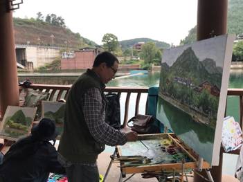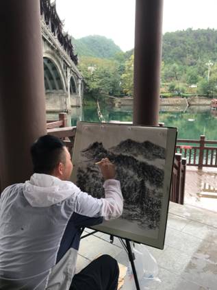 不仅同学们收获颇丰,各位老师也临水而画,寄情于山水之中。在下司山清水秀的自然环境和民族风情浓郁的人文环境的感染下,创造灵感不断地涌出,创作了许多优秀的作品。