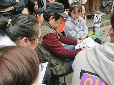 11月3日—11月5日指导员工速写练习期间,五名专业老师首先带领各自班级游走龙潭古镇,熟悉环境,根据其整体布局、建筑造型,选出最优写生点;接着,老师们开始现场授课,讲解写生构图技巧、怎样观察思考积极发现自然之美,引导员工快速进入作画状态。通过几天的速写训练,同学们快速适应了户外写生,为后期色彩课程奠定基础。