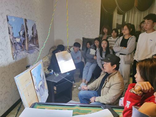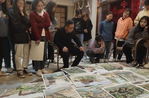 写生中,师生们在龙潭古镇感受到了当地原始而又古朴的自然风光和淳朴悠闲的居民生活,并将眼中的美景、心中的感受用画笔描绘出来。写生期间,师生们日程排得满满的。白天,老师们在指导员工、为员工示范的同时,还得自己创作,完成学院要求的创作作品。晚上,老师们还要对白天同学们的写生作业进行逐个点评,在鼓励与肯定之中明确指出各自存在的问题。员工们也态度认真,积极配合,写生作品的质量有了明显的提升。