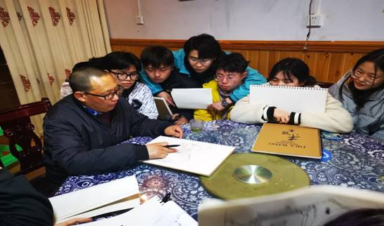 每天晚上,老师们都会对员工的作业一一点评,耐心细致地讲解画面存在的问题和需要改进的地方,同学们也认真听老师的讲解。通过短短几天的练习和老师的指导,同学们的进步十分巨大,对户外写生也有了更进一步的感悟和理解。
