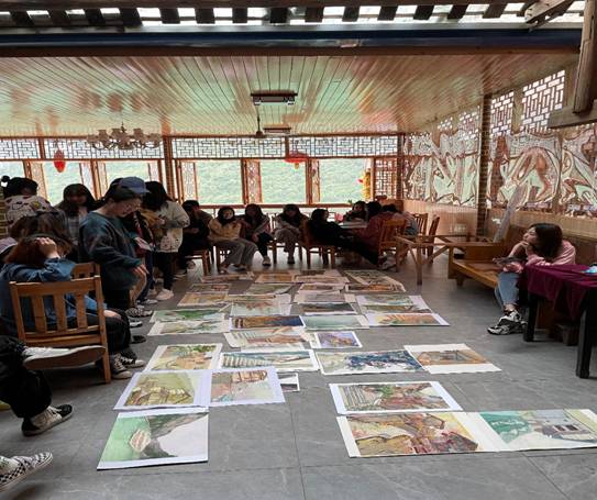 写生期间,专业老师们着力于讲授、选点、指导员工作画、点评作业这些环节。老师们教得认真,员工们学得投入。同学们的进步显著,对户外写生的感悟和理解也更深刻。