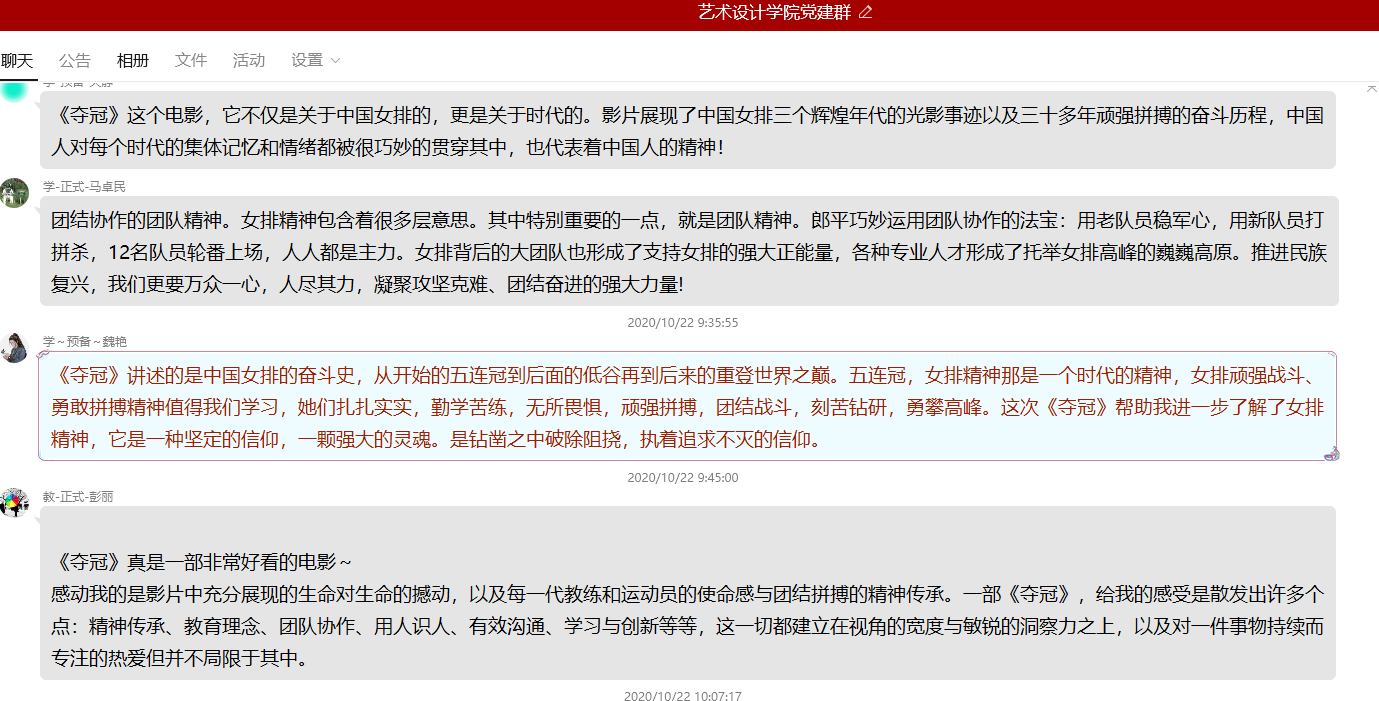 观影结束后,同志们进行了热烈地讨论,大家纷纷表示,会将女排精神融入到自己的学习和工作中。